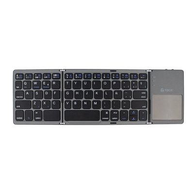 Teclado inalámbrico plegable TEROS TE-4075S, BT 3.0, gris Lleva la productividad contigo con el teclado inalámbrico plegable TEROS TE-4075S. Su diseño compacto y ligero incluye panel táctil de 5.5 x 4.5 cm, conexión Bluetooth 3.0 y alcance de 10 m. Compatible con Windows, iOS y Android, ofrece escritura cómoda con 64 teclas en español. Batería recargable de 140 mAh y cuerpo plegable ideal para viajes o trabajo móvil. Dimensiones: 30.4 x 9.8 x 1.8 cm.