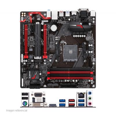 Motherboard Gigabyte GA-AX370M-Gaming 3, rev 1.x, AM4, AMD X370, DDR4, SATA 6.0, USB 3.1 Soporta procesadores Ryzen / 7ta Generación A-Series / Athlon, 4 ranuras DDR4 2133 / 2400 / 2667 MHz, LAN GbE Realtek, SN/VD/NW, formato micro-ATX.