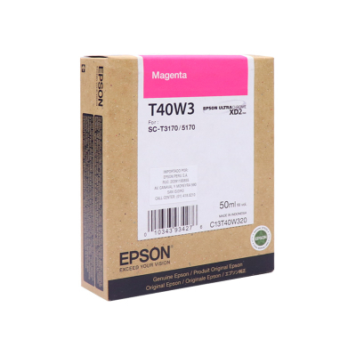 Solicítalo CompartirCartucho de tinta Epson T40W320, UltraChrome XD2, contenido 50ml, color magenta. Las tintas de pigmento de alta capacidad UltraChrome XD2, de próxima generación, brindan impresiones duraderas con colores brillantes y líneas nítidas.